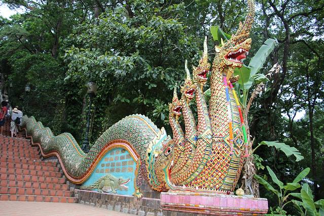 5.23青岛出发 原计划是由青岛飞上海 然后由上海转机去清迈 但是上海飞清迈的航班临时取消了 所以从新买的青岛飞昆明 昆明转清迈 青岛飞昆明是早上7:45-11:20 昆明飞清迈是15:25-15:25 因为泰国和中国有一个小时的时差 所以赚到了一个小时 到了机场发现清迈下雨了 幸好下雨还有一丝丝的凉爽,会让你比较容易适应当地的天气,因为泰国还是比较热的,因为下雨我们的飞机有点晚点,提前在淘宝订的接机,发现接机的工作人员一直在机场等着,服务态度非常好。到达酒店稍作收拾就去了古城,因为泰国晚上黑天比较晚,可能都要7 8点左右天才会黑,所以出去嗨是没有问题的。但是古城的一些寺庙是不能进去参观了,可以先去了解一下路线。