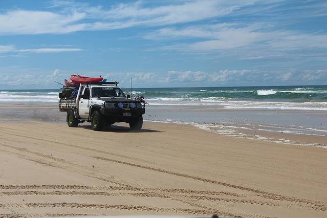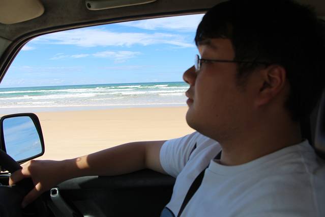 早上7点起床,吃了早饭之后就要去看岛上开越野车的教程,大致就是说岛上都是沙地,沙子分为湿沙和干沙两种,潮湿的沙子可以提供很好的摩擦力因为不会到处流动,比如海滩上的沙子,在这些地段可以开到80公里,而岛内的道路只能开40,在靠近海滩和植物的分界线处沙子一般偏干,车很容易陷进沙子里面,要尽量避免类似的地方。还有就是要注意潮汐,岛的西海岸是不可以开车的,所以东海岸成为大家最经常使用的道路(因为海滩上开车比较快),但是东海岸在涨潮的时候会被海水淹没,所以满潮前后两个小时不能走沙滩。车子可以趟水,但是绝对不能进海水,因为海水中的盐分会损坏车的电器元件,车子在海浪中熄火可不是开玩笑的。大致也就这几点要注意。话说岛上开车是要买permit的45刀,可是当初没人提醒我买,我就给忘了,开出去才想起来,又没法回头买,然后就省了45刀。