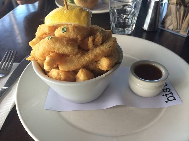 小吃货点了他们最有名的Calamari,我是第一次吃到这么肥美的鱿鱼圈,来试一下就知道为什么我用肥美这个词了。顺掉一体,他们自制的酱其实才是美味的关键。