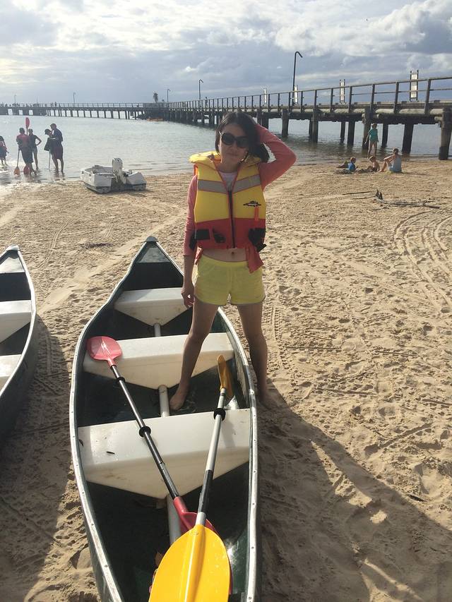 一路绕了挺久的,回来的时候要从防波堤下面钻过来,咱俩方向控制的没有那么好,被卡在桥洞地下一次,最后用船桨推着桥墩才算脱困。回到岸上的时候太阳已经开始要下山了,我们还预定了海边的落日套餐呢!玩了一天先回去换身衣服再出来。