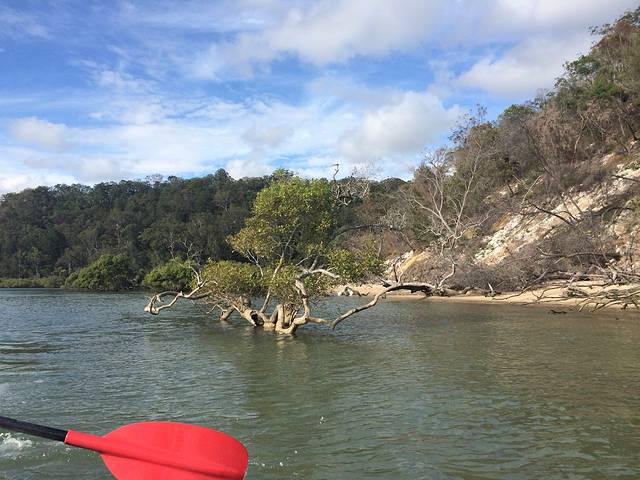 有种进入了亚马逊雨林地感觉,跟着护林员地好处就是,他一路都会讲解看到的各种动植物。水边的植物被土著人用来当做调味品,这也是岛上的特色之一,厨师会用各种树丛中采集到的食材——BUSH Tucker来烹饪。反正我是吃不惯,护林员采集了一片叶子让我尝尝,满满的都是海水的咸味,小吃货倒是觉得吃起来还挺有特色的。