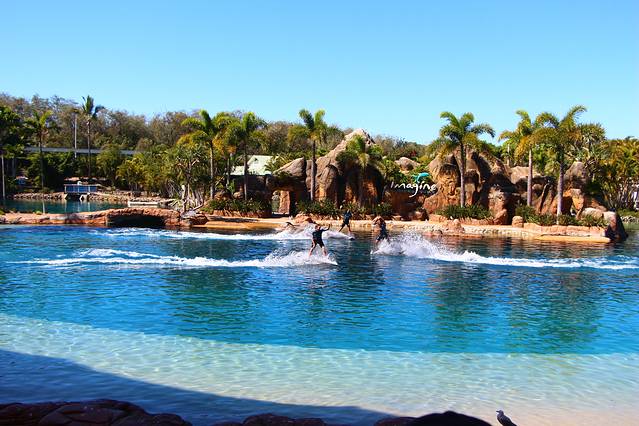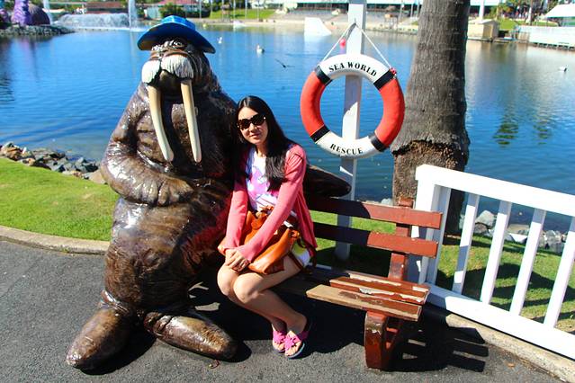 一大早,阳光明媚,出发去海洋公园了,因为我们只准备呆两天,所以今天要去两个公园,早上天还不是很暖和就不想去Wet‘n'Wild,正好Seaworld比水上世界早半小时开门,就先去海洋世界了。其实海洋世界没有特别的有特色,世界各地都有,论游乐设施,这里不见得比香港的海洋公园更好玩,但是听说表演更加精彩。所以还是很值得一去,但是不值得放太多的时间。一个早上可以玩完,然后下午等水被晒热了正好可以去水上乐园。