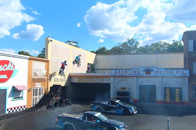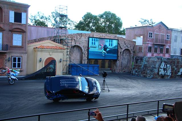 表演开场了,好莱坞的特技团队展示各种毕生所学,各种只有在电影里面才能看到的场景都在这里呈现。