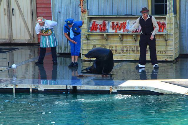 进到了海洋公园里面,直奔第一场海豹表演,路上经过海洋动物救助站,澳大利亚的海岸线非常的长,所以经常会发现需要救助的海洋动物,那么搜救队就会出动。海洋公园和搜救队有合作,所有受伤需要救助的动物都会安排在海洋公园里面进行疗伤,伤愈了就再次放回海里。这种模式让人心里暖暖的,不象我们以前听说的日本抓海豚来表演那么不人道。