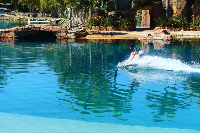 海豹表演之后一个小时就是海豚show,绝对不能错过的表演。时间还多,我们去坐了一个小型过山车,叫做海岸搜救队,其实也就是感受一下摩托艇的感觉,速度挺快的,不过不算很刺激。