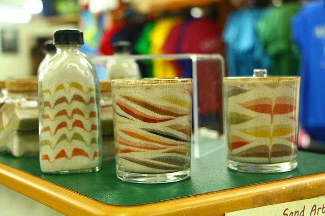 然后到了七彩沙了,结果其实让人挺失望的。不时自己想像的那种彩虹的七种颜色,而仅仅是有各种不同颜色的沙子。不过听说这里的沙子并不是颜色最丰富的,岛上另一处叫做Rainbow beach的地方出产的沙子就是像彩虹一样多彩,不过可惜我们去不到了。据说还要看季节的!