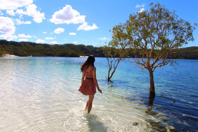 戏水,Lake McKenzie 的水全部都是雨水汇集而成的。号称是最纯净的湖泊。