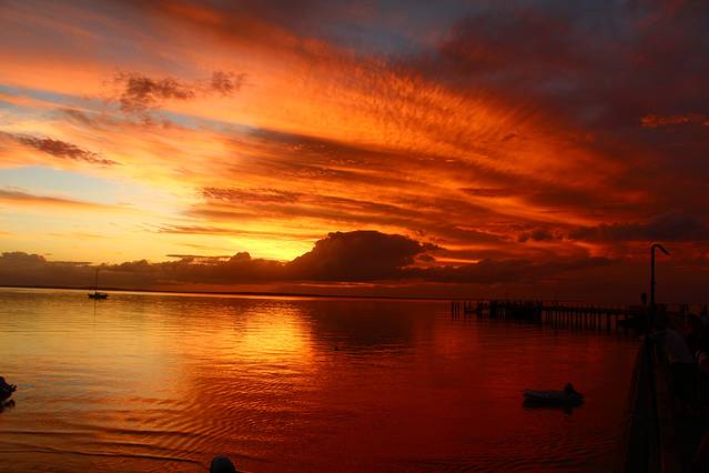 海边的落日,不同的地点落日有着不同的味道。灿烂的落日照染红了天空和大海。就连沙滩也变成了金色。