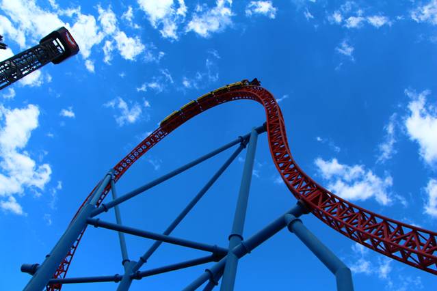 来华纳兄弟影城最期待的就是两个,一个是飞车表演,另一个就是我们背后突兀的红色超人过山车。