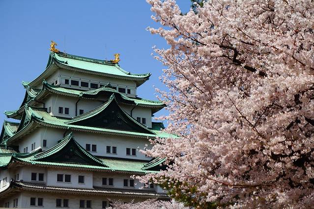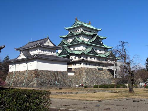 城堡建于1612年,它被大块的公园包围着,周围有小的茶室、传统的日本庭园。城堡里最大的特色是装饰在屋檐上的两只金色的海豚。城堡在二战中被焚毁,1959年重建。现在,它是艺术品的博物馆。春天2000多株樱花盛开,树木葱茏。这时的名古屋城堡是最美丽的。