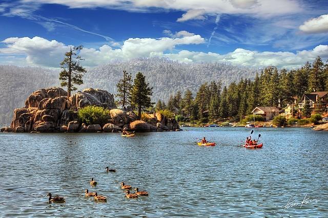 这里湖光山色,有很多度假小木屋,湖畔的山坡在冬季就是滑雪胜地
