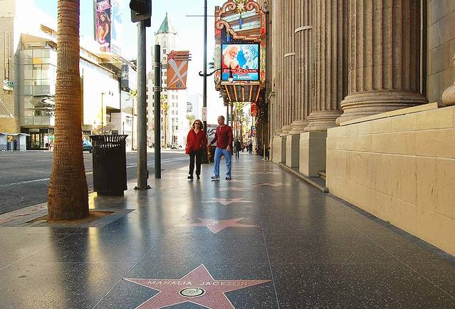 2500多颗星形奖章和手印熠熠生辉,国际剧院和蜡像馆簇拥两旁