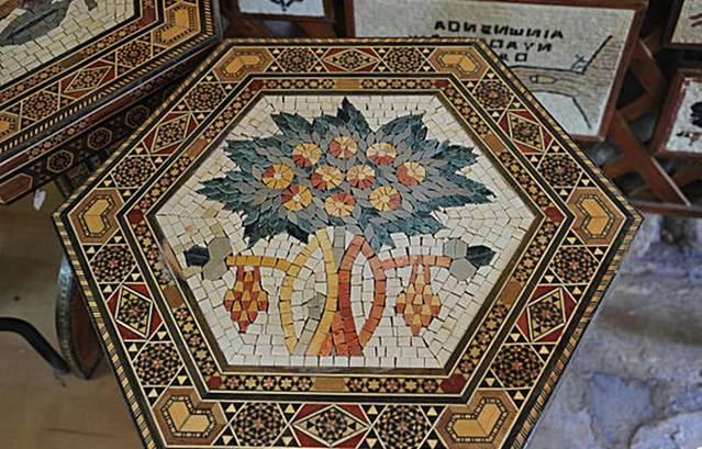 约旦城市马达巴是马赛克发源地,由多彩薄片石镶嵌成各种图案,手工精美优良。