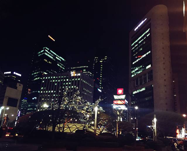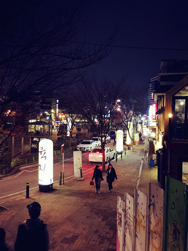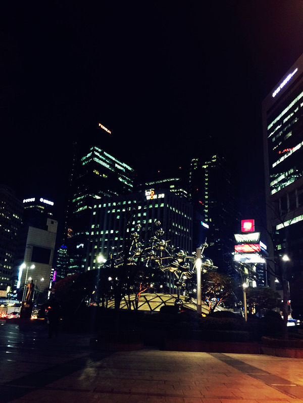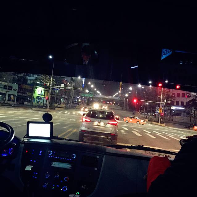 和菲姐吃饱喝足奢侈的打了个车回去的。坐的橙色的出租,晚上要加收服务费,一个起步价的价格,因为真的很近,不过韩国开车的司机都是大叔级别的,我把酒店名片给他看,他居然都不知道(不知道真不知道还是假不知道)还用了导航,最后还绕了一下路才把我们送到酒店。醉了。