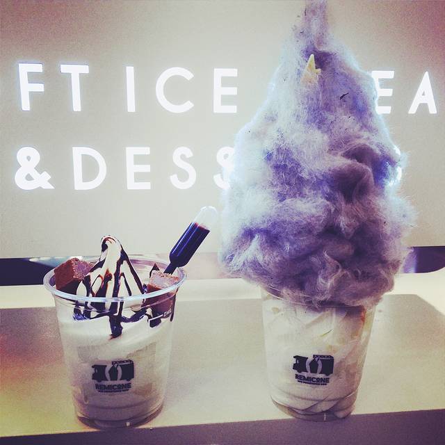 点了两个算招牌的冰淇淋吧,里面可以随意加辅料,还有mini马卡龙。