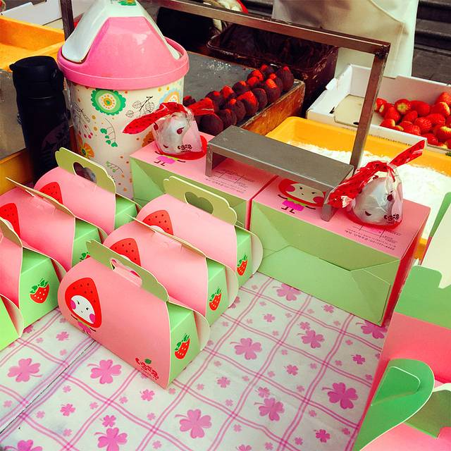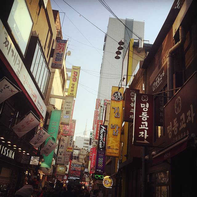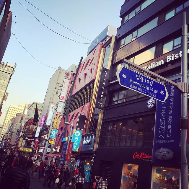 明洞聚集了大批的国人,到处都是普通话的声音。基本上在明洞不用担心语言问题,中文通通能搞定。连推车的小贩都会中文。