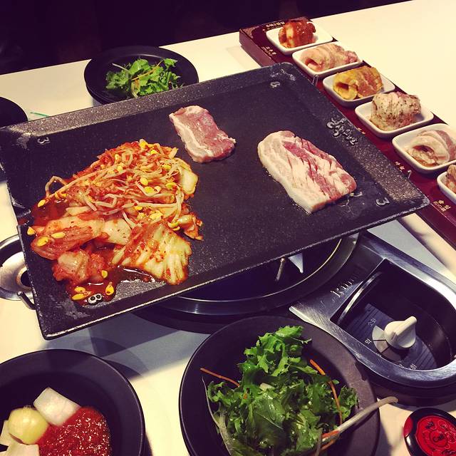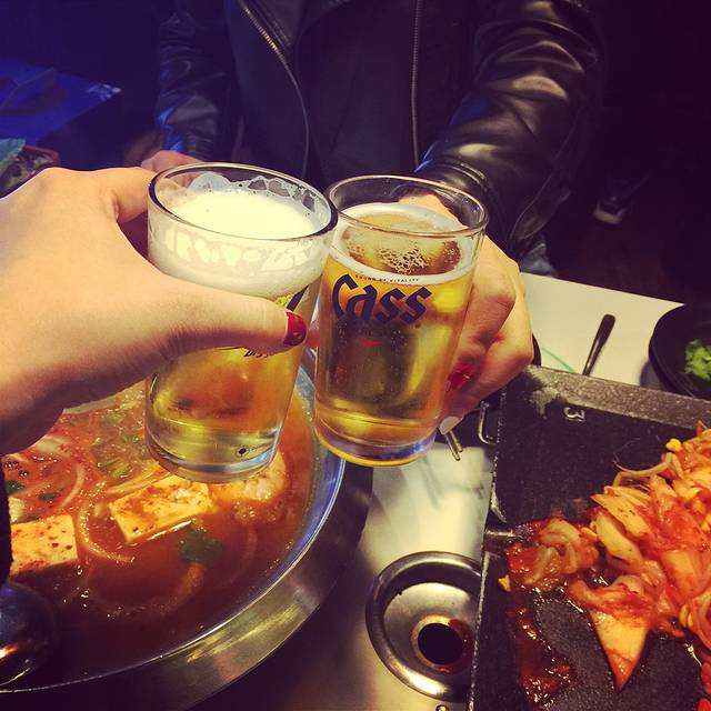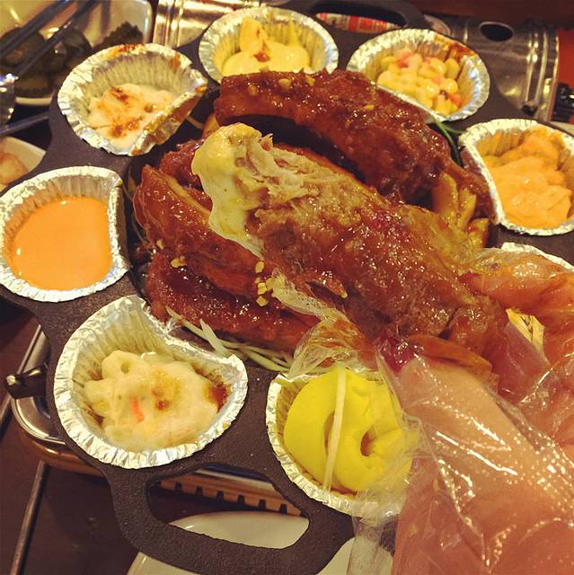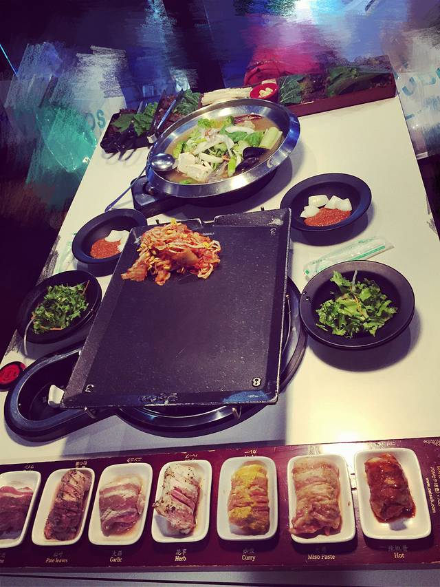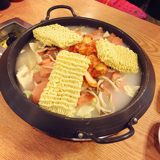 点了两人份的部队锅。韩国好多饭店点菜都是按人头算的,两个人就必须点两人份,两个人吃一份就不可以。