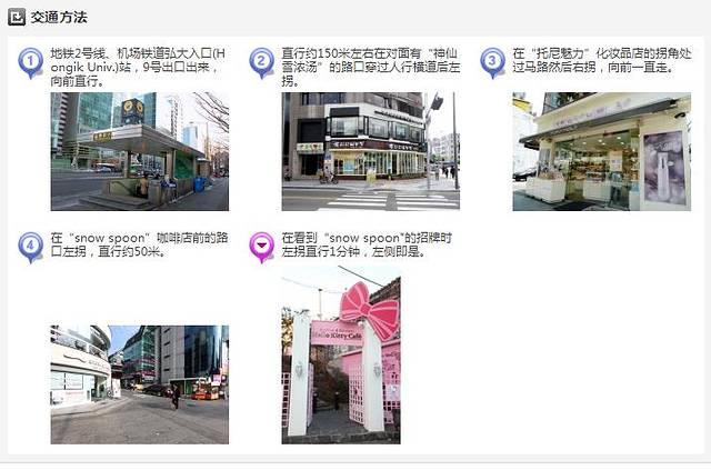 门牙在家把要去的地方在“韩巢网”先搜好路线和地图并保存到手机,发现韩巢网地图真心很强大,基本都是配图文路线,实际找起来就变的很容易。