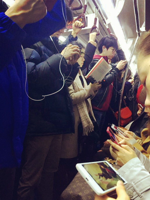 地铁上的偷拍,地铁上的秩序很好,基本没有什么声音,一般都是自己听歌,玩手机或者看书。就算交流也都是比较小声的。