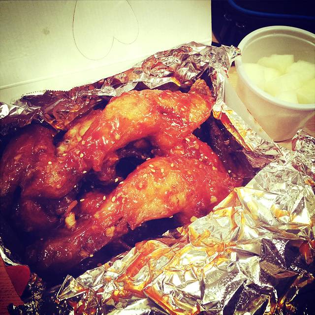 从东大门再步行回酒店,路过"TWO TWO”炸鸡,打包了一份回酒店当午饭。