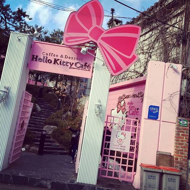 弘大出来,我们是先去的“Hello kitty cafe”事先有搜好地图,跟着图片路线走很容易找。
