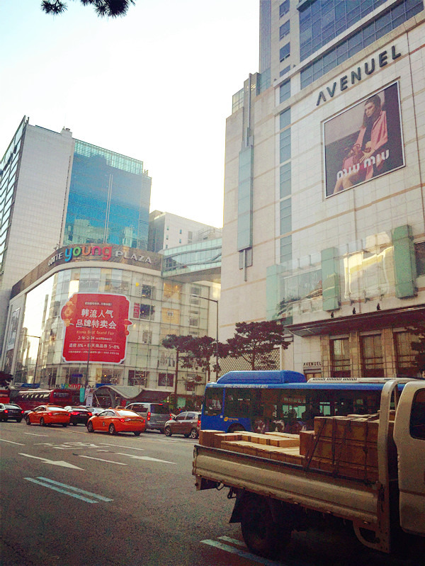 门牙个人比较喜欢逛 lottle fitin和doota。因为这两家店一层都有独立的韩国设计师设计的一服,质量也不错,价格的话不算低,不过款式比较新,并且撞衫的几率低。门牙这次在lottle fitin买了一件春款外套(下面会上图的),营业员欧尼就对我说是当天才上的新款,一共三个颜色,一个颜色仅有一件。