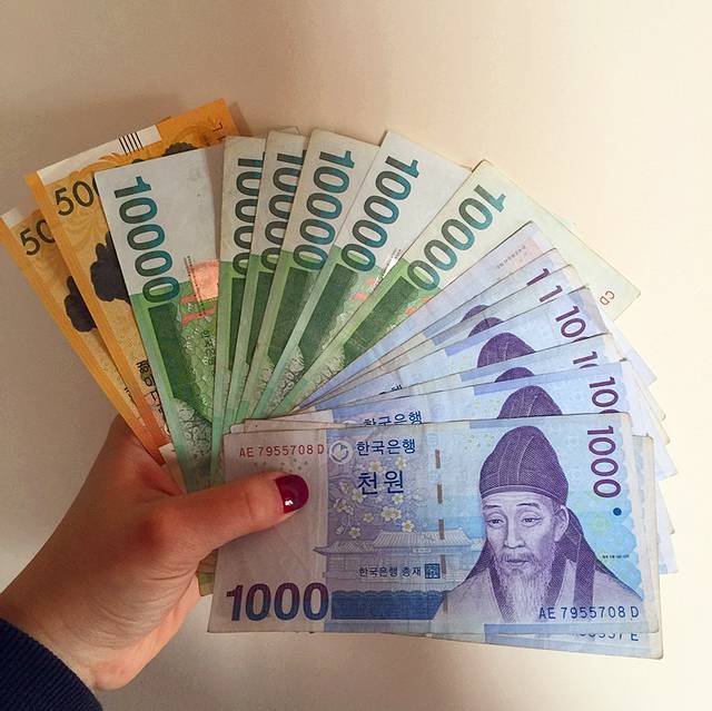 找朋友在中国银行帮忙换了1000人名币的韩币。当时中行的汇率是1:166 自己带了几千块现金到韩国换(韩国的汇率每天不一样,不过都比国内合算很多) 免税店,东大门我都是选择刷卡。