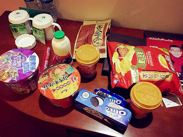 外面没有一家饭店开门,无奈菲姐和他男票找了个超市买了一堆吃的当晚饭,单身狗又蹭到吃的啦,哭。