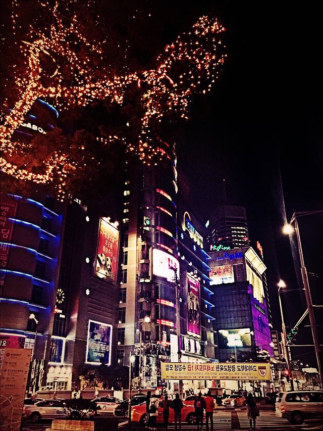 午夜12点的东大门还是热闹无比,街上都是人,各种摊贩也有,甚至还有带孩子逛街的,好佩服他们的夜生活。