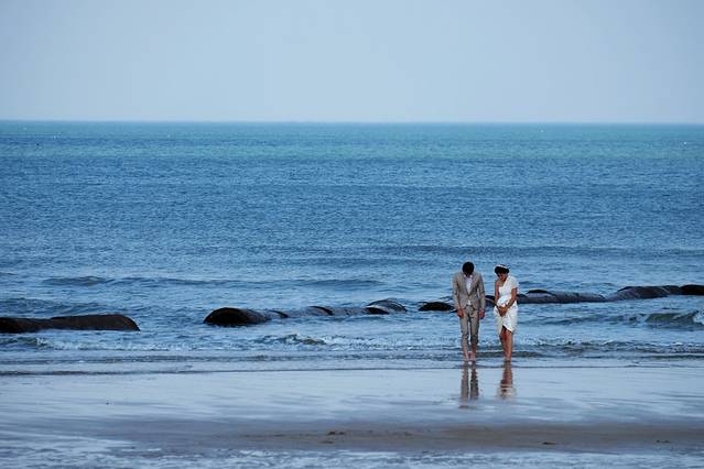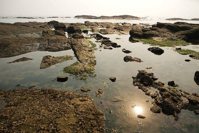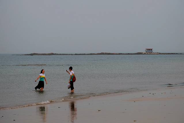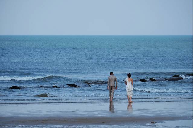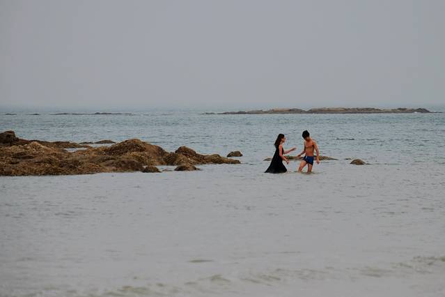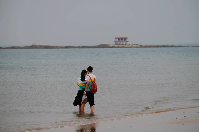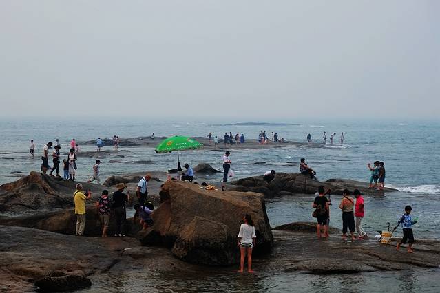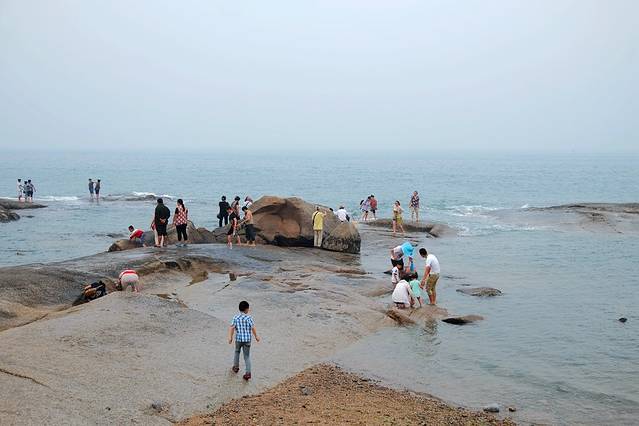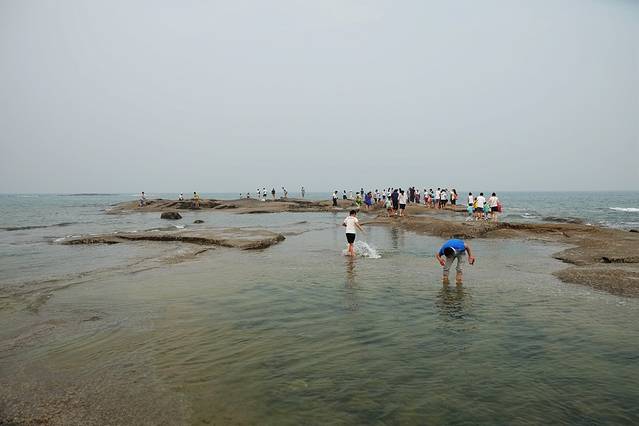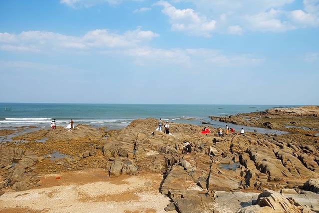吴家台细腻的沙滩旁边就是大片的礁石群,退潮的时候大部分都会露出海面,不但是赶海的好地方,而且也是非常漂亮的背景,在这里拍照的情侣从早到晚、不计其数。