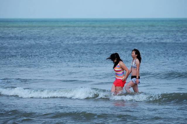 其中最推荐的是吴家台旁边的海滨浴场,这里其实是和海滨国家森林公园的沙滩连在一起的,但是海滨国家森林公园要门票,这里则完全免费,而且坡度平缓,砂质细腻无贝壳等杂物,最适合下海游泳。
