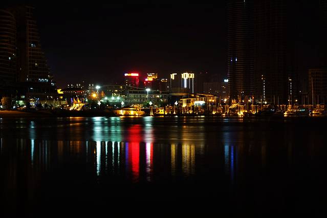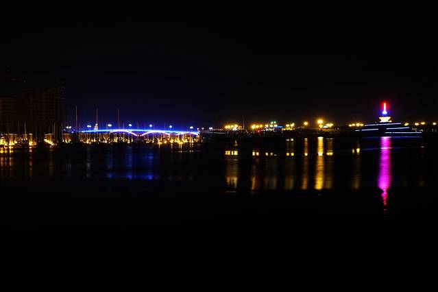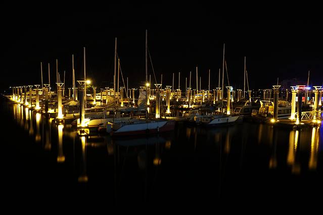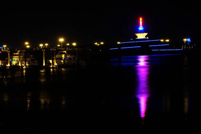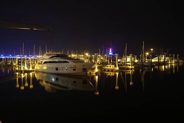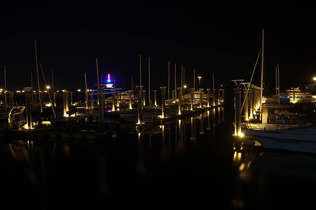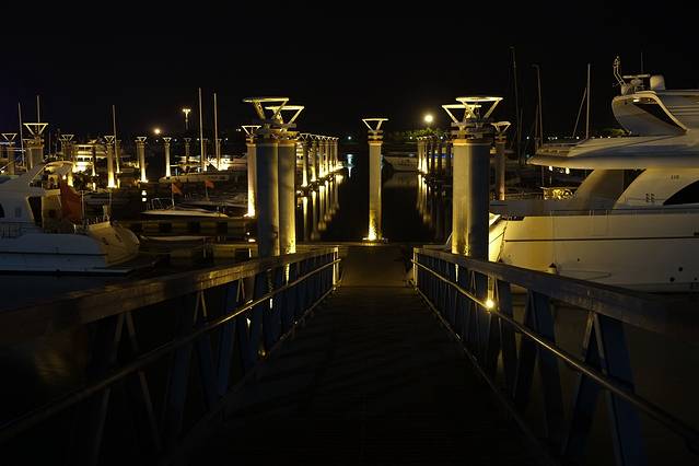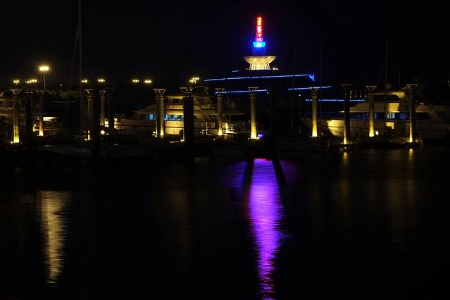 宁静的海港夜晚散发出迷人的光彩,让人久久不愿离去。