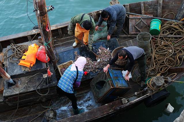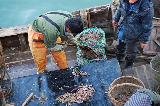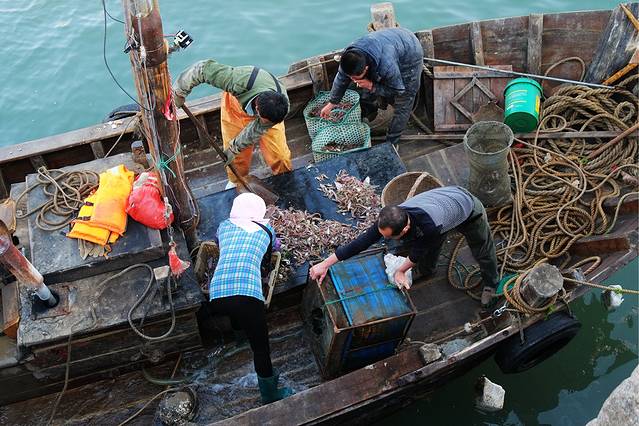 正好看到渔船回来,有人专门等着上船去收购,因为现在是禁渔期,所以貌似收获并不太多。