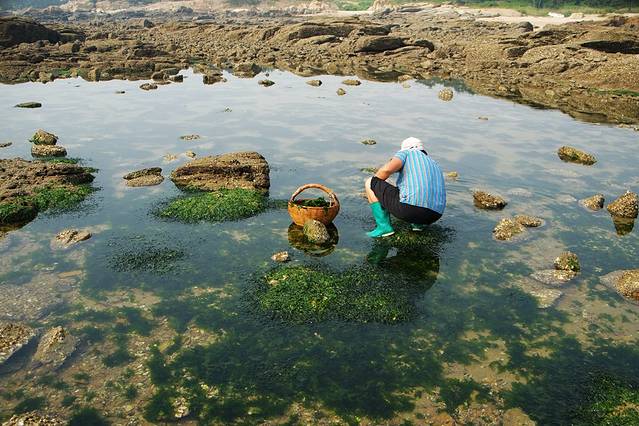 捡海菜的大娘,不知道波力海苔是不是这玩意儿做的,卖那么贵,这里到处都是,随便捡。