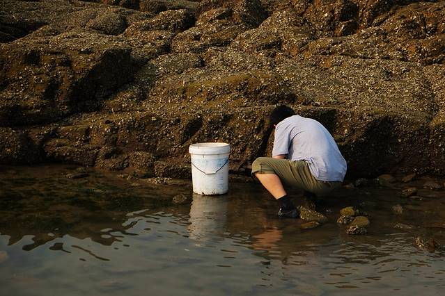 到海边来,除了下海游泳,看日出日落,其实还有一个最重要的项目是不能错过的,那就是赶海。赶海要在退潮退到最后,涨潮前差不多一小时左右的时间,每天都会比前一天推后四十分钟。