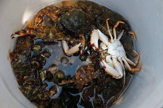 好了,清点一下战利品准备收工了。收获还真不少,虽然螃蟹不大,但是能有这么多收获还是很高兴的。