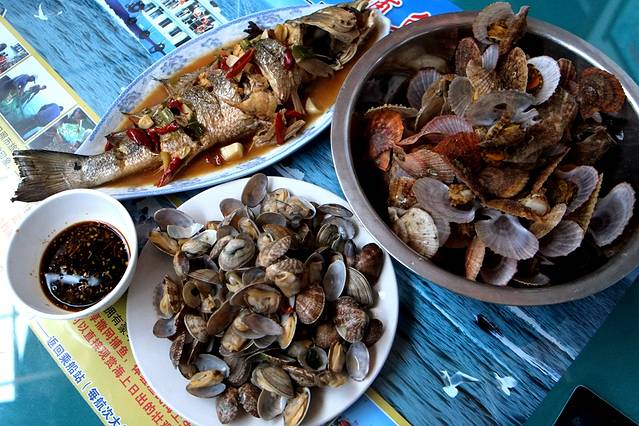 日照的美食当然就是海鲜啦,但是6月开始日照已经进入禁渔期,现在海鲜的价格很贵,所以我们三餐基本都是在渔家吃的。