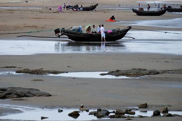 算好了时间,老板带着我们来赶海。今天离初一还有两天,所以潮退的并不是太好。