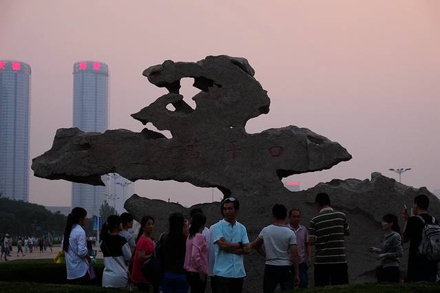 暮色降临,来到万平口。因为有传说,旅游来日照,必到万平口,所以这里应该是日照人最多的景区了。