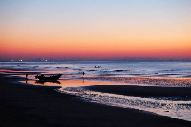 赶海最佳的时间是在大潮汛时期,就是在农历每个月的初二和十六的前后两天,因为是贝类海鲜行动较为迟缓,当海水退下去的时候这些贝类海鲜就被搁置在沙滩或泥滩上了。