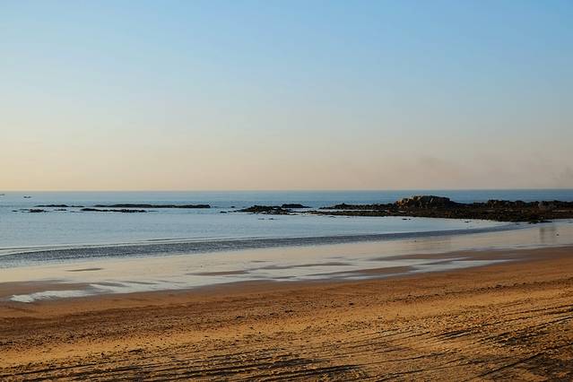 吴家台村就在日照唯一的4A景区海滨国家森林公园门口,旁边就是日照最美的沙滩,没有开发,毫无商业气息,但沙质好,坡度平缓,最适合游泳。这里的日出也很漂亮,退潮后旁边露出大片的礁石,也最适合赶海。