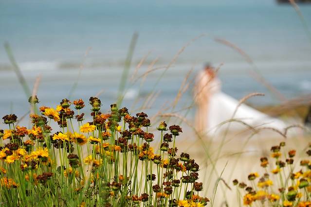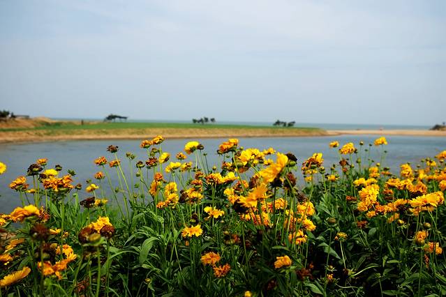 沿着海滨的公路继续往南走,沿路的海景真的很不错,现在花开正浓。这里是桃花岛风情园外面的一片花地,非常漂亮。