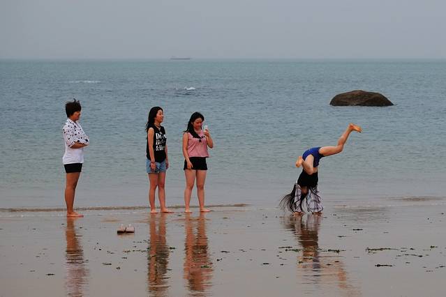 来日照,开发成熟的海滨浴场当然也要去看看,说实话景色差强人意,这里主要是看人的。