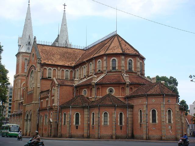 铺满红砖的圣母大教堂教堂经历的100多年风吹雨打,丝毫没有褪色。两座钟楼耸立,非常精致、尊严和壮雅,墙上的彩色玻璃镜子在阳光的照耀下波光粼粼,非常值得一看。