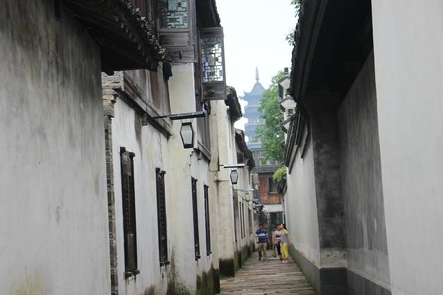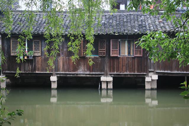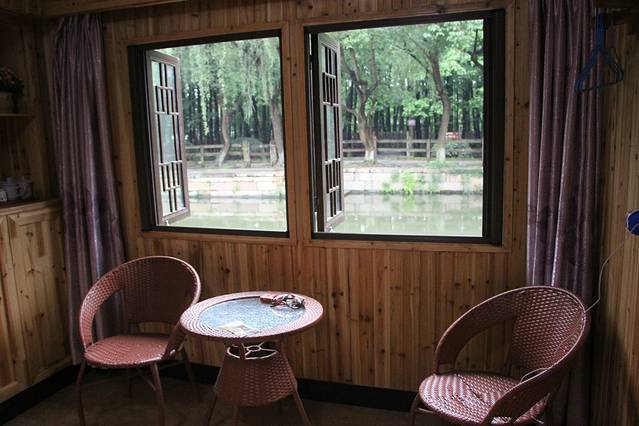 住在东栅,非常美妙,非常安静;22:00老板将我们接到客栈时,淅沥沥的小雨闷了一天,终于酣畅淋漓的下起来了,街上也早就没了行人。所以,我们洗掉一身的疲惫,安静的美美的枕着雨声睡了一觉,第二天6:30在虫鸣鸟叫声中醒来,打开窗子,映入眼帘的近处的潺潺河水,远处的郁郁葱葱,真是“不识庐山真面目,只缘身在此山中”