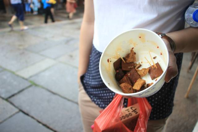 我们是吃货两枚,没有正经的吃过饭,走走停停吃吃,所以几乎吃遍了乌镇的各种小吃,推荐的有:臭豆腐、馄饨、酱鸭面、酱鸭腿、嘉兴粽子、萝卜丝鲜肉饼也凑合入选。不推荐的有:麻糍(看着好玩,但食之无味)、烧饼(很多人排队,但味道不咋地)、葱包烩。