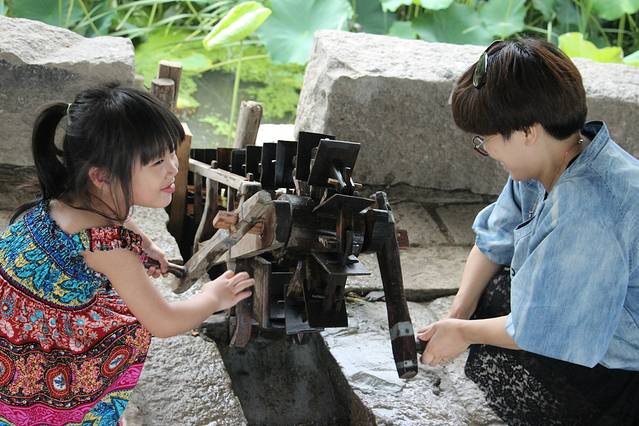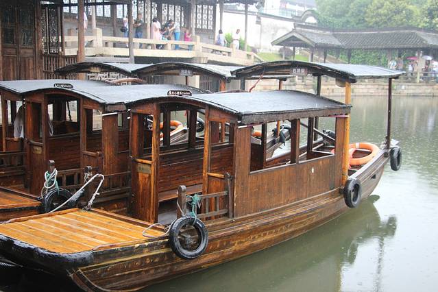 进去景区,会有一位工作人员向右面指引,说有船提供,这个是付费的;左面有免费摆渡口,从西市河的一端划到染布坊的位置,游览正式从那里开始。但免费摆渡口排队的人太多,所以建议步行过去,出景区的时候可以乘坐免费摆渡船回来,也算是坐过船了。
