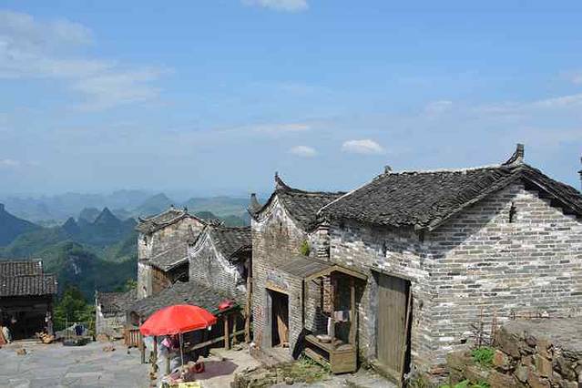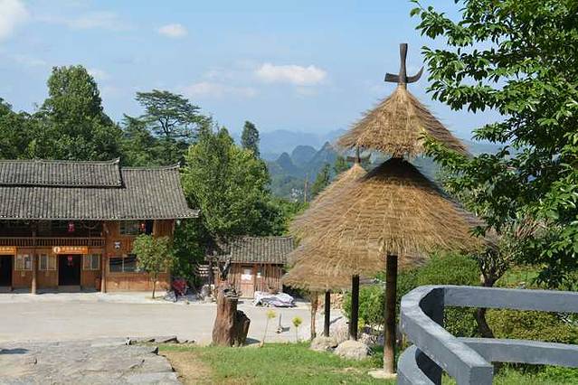 千年瑶寨整个寨子被山包围了,周边是深谷,寨子房屋建筑都是层层叠叠的,还有一路的石板路连到寨顶,从山顶可以看到整个寨子,就像看一幅水墨画。还有一些房屋这在修葺中,相信在未来的建设中这里将越来越美。