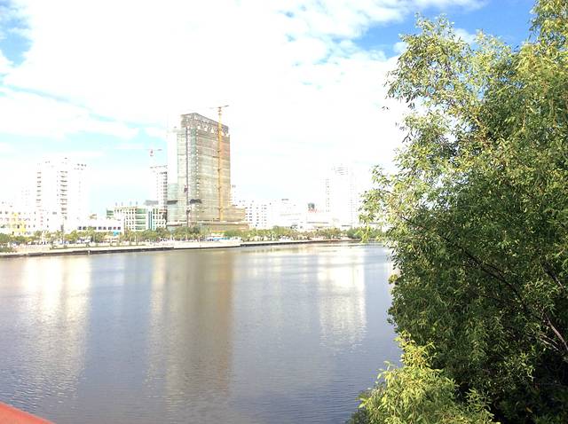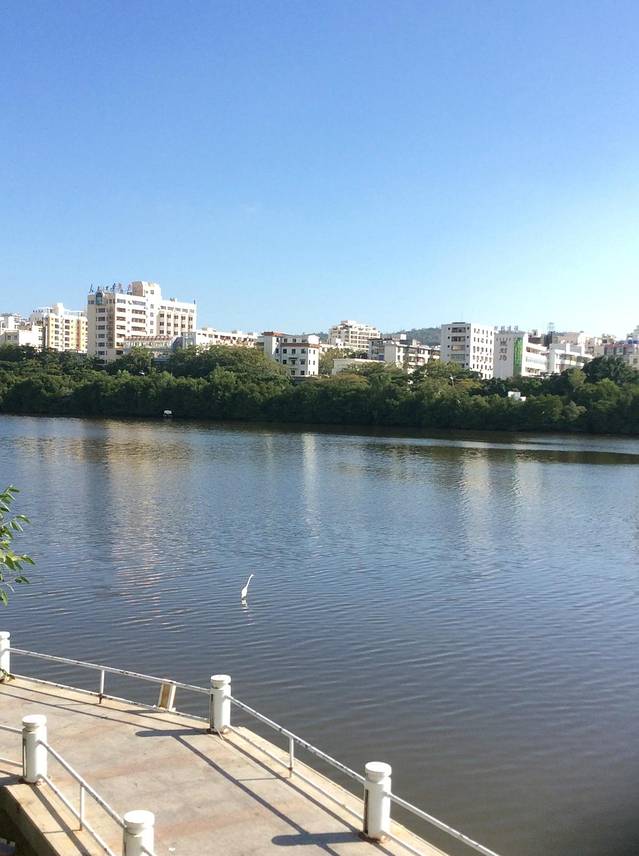今天我的第三个朋友就来了~~大姐,一个特别可爱的女生,早上去火车站接她,路过三亚河的这条桥。一定要上去走走。桥两岸是湿地,栖息着国家二级保护动物——白鹭。没有任何围栏屏障,人与自然相处的灰常和谐。