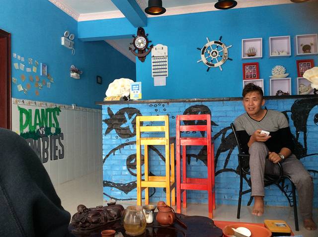 之前讲到全村中午一直停电到晚上11点。办完入住下来和老板聊了好久天,老板人很好,还调侃说他不是老板,妻儿才是他老板。闲聊中,老板沏功夫茶请我喝~~原来没有网络人与人之间都亲近了很多,老板还说如果在三亚后面的日子遇到什么问题可以打电话问他,他搞了旅游这些年,什么都知道点。指个路啥的肯定没问题。虽然知道不会打,但心里满满温暖。